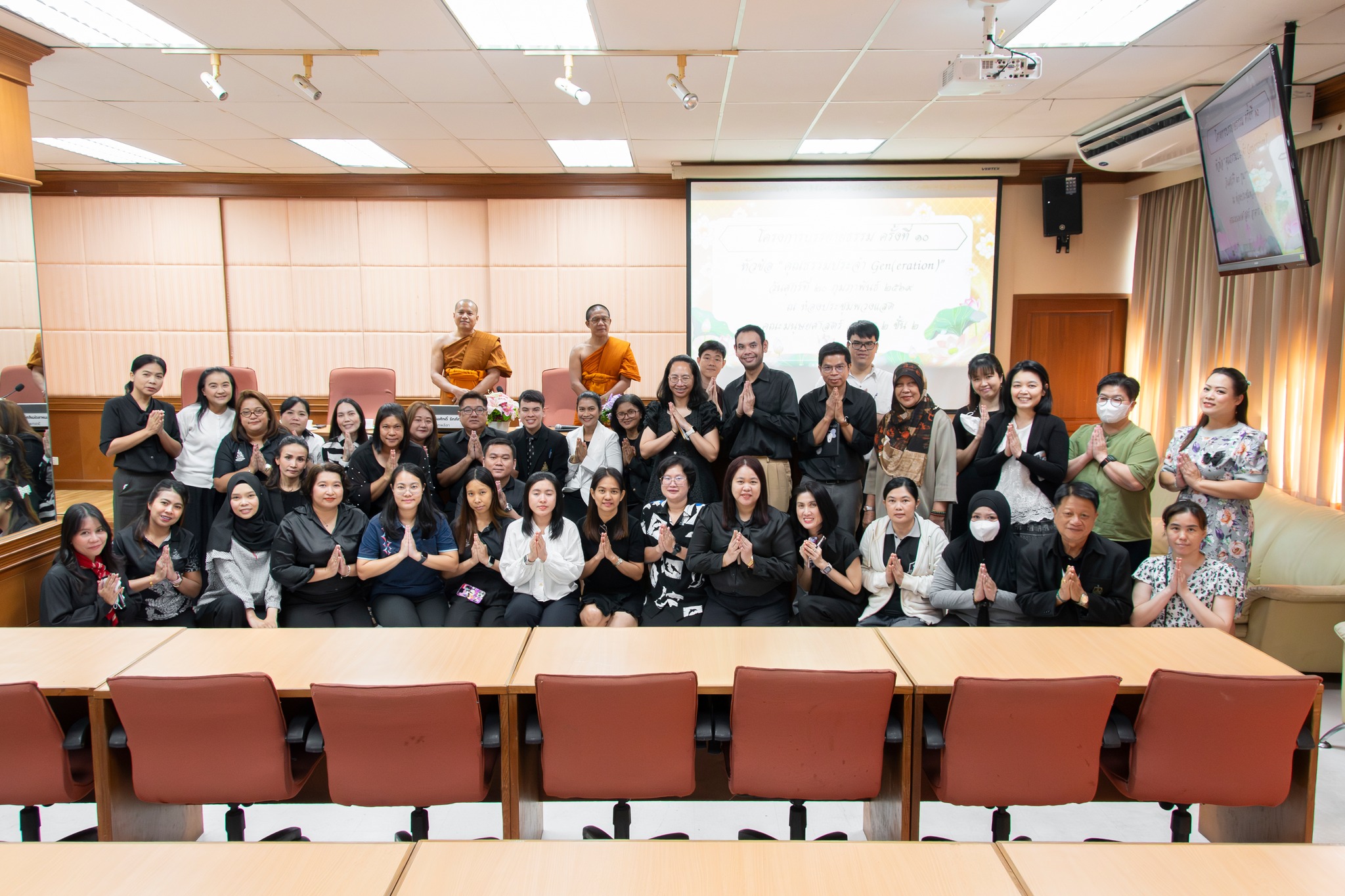เมื่อวันที่ 20 กุมภาพันธ์ 2569 เวลา 08.30 – 11.15 น. คณะกรรมการศิลปวัฒนธรรม คณะมนุษยศาสตร์ มหาวิทยาลัยรามคำแหง ได้จัดโครงการบรรยายธรรม ครั้งที่ 10 ในหัวข้อ คุณธรรมประจำ Gen(eration) โดยได้รับเกียรติจาก พระมหาเด่นศักดิ์ รักภักดี วัดเทพลีลา มาเป็นวิทยากร และ อาจารย์สิริชัย โชคชัยสัมฤทธิ์ รองคณบดีฝ่ายบริหาร มาเป็นประธานเปิดงาน ณ ห้องประชุมพวงแสด ชั้น 2 อาคาร 2 คณะมนุษยศาสตร์ มหาวิทยาลัยรามคำแหง