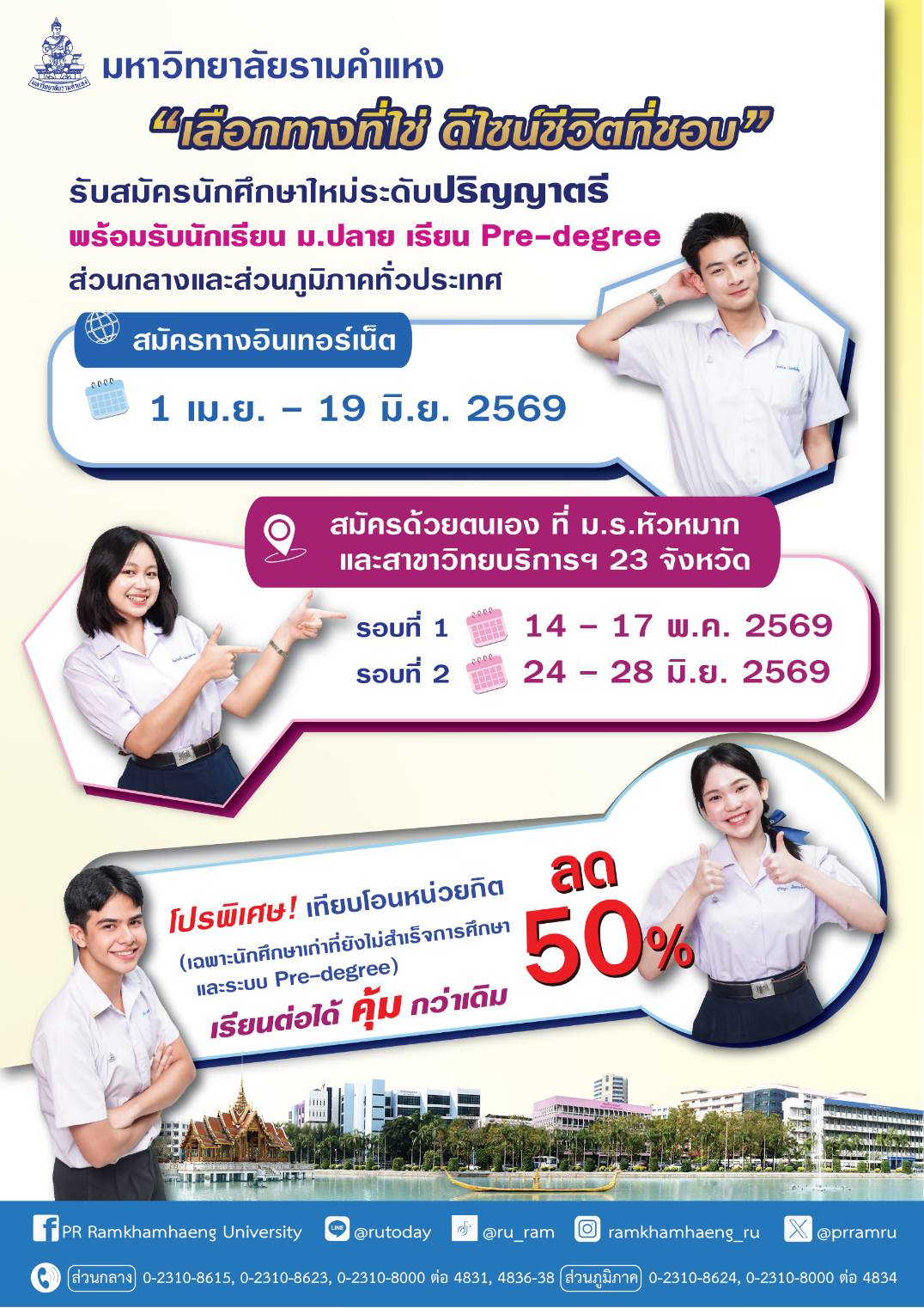 3. การรับสมัครเป็นนักศึกษาใหม่ ทางอินเทอร์เน็ต ภาค 1 ปีการศึกษา 2569 (ส่วนกลาง)